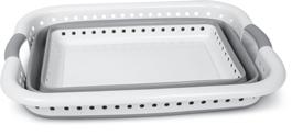 Praktisch, grosser Patent-Wäschekorb mit variabler Grösse 67 x 45,5 x 26,7 cm Tiefe. Zusammengeklappt mit seinen nur 8 cm Dicke findet er überall Platz. Aus pflegeleichtem PP und Thermoplast Material.