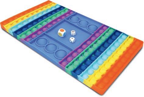 re plus délicats. Au niveau 2, un lancer de dé détermine le nombre de bulles que l’on a le droit de pousser dans une rangée de couleur. Si le nombre est su périeur à celui des espaces dispo nibles, l'opportunité est perdue et il faut passer son tour. Le niveau 3 est vraiment crucial, car la rangée de cou leur est à présent aussi déterminée par un lancer de dé. Trouveras-tu un ou une partenaire capable de jouer avec toi à tous les niveaux? Le jeu est par fait en déplacement et avec son terrain de jeu en caoutchouc souple, il se glis se dans toutes les poches. Avec Push & Play, les longs trajets passent au ni veau supérieur et l’ennui s’évapore! No de comm. 14143