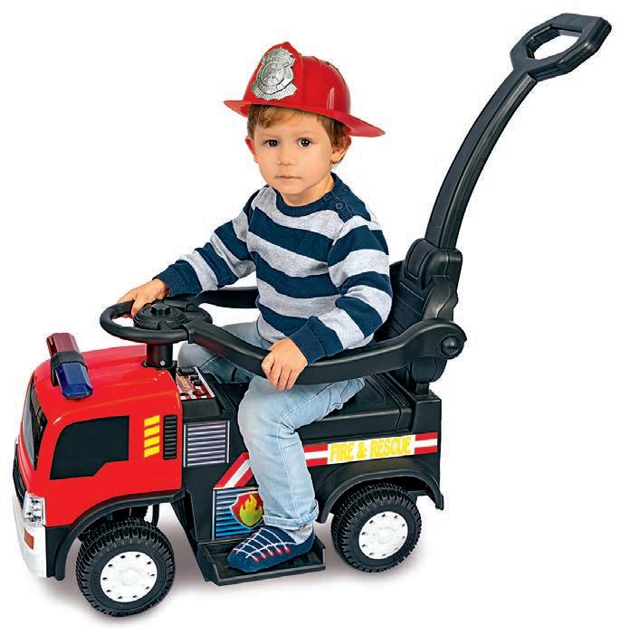 Quel enfant n’a jamais rêvé de condui re un vrai camion de pompiers ? Ça tombe bien, avec notre camion de pompier électrique doté des nom breuses fonctions suivantes: sirène, feu bleu clignotant, marche avant et arrière, pare-chocs, siège avec barre de sécurité amovible. Entraînement élec trique avec pile 6V4, 5AHx1, tension de sortie DC6V500mA, temps de char-