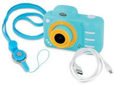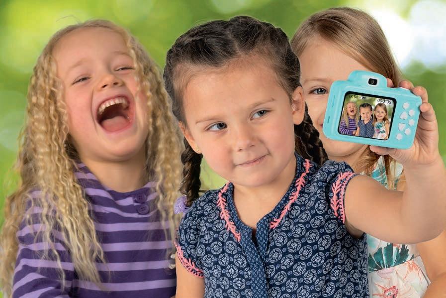 1 Appareil photo pour enfants, carte SD 8GB incluse Génial, avec 2 lentilles, l’une à l’avant, l’autre à l’arrière, pour des selfies par faits. Les enfants s’amusent à faire leurs propres photos et peuvent admi rer le résultat instantanément sur l’écran 2 pouces (5 x 3,5 cm). Résolu tion 1920 x 1080/30FPS, carte mé moire de 8GB et câble de charge USB inclus. Dimensions appareil env. 9,5 x