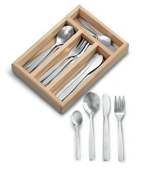 Un design intemporel d'Angelo Fortuna aux formes modernes. Fourchettes, cuillers, couteaux, etc. en acier spécial poli et de forme ergonomique agréable.