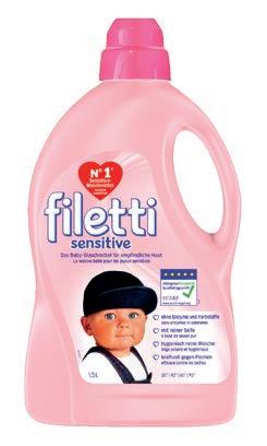 * Nielsen Suisse: marque de lessive sensitive la plus vendue (2021). sans colorants et enzymes pour la peau sensible certifiés adaptés aux personnes allergiques Collectionnez des points avec filetti sensitive! www.filetti.ch