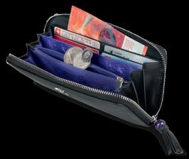 Le plus populaire des porte-monnaie, en cuir de vachette souple 100% véri table, peaufinée avec des huiles végé tales, surface soyeuse et agréable. Mê me les compartiments pour les billets sont en daim véritable (et non en tissu comme à l’accoutumée). Le résultat en est une extrême longévité. Cuir de grande qualité, presque introuvable ailleurs. 9 compartiments intérieurs, 1 compartiment à monnaie, doublescoutures blanches. Dimensions fermé 11,5 x 9 cm.