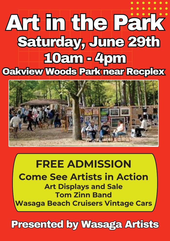 Location: Wasaga Beach Recplex Gazebo Meet artists & buy original local art. Art, Music, Demos & fun with Wasaga Beach Cruisers joining.
