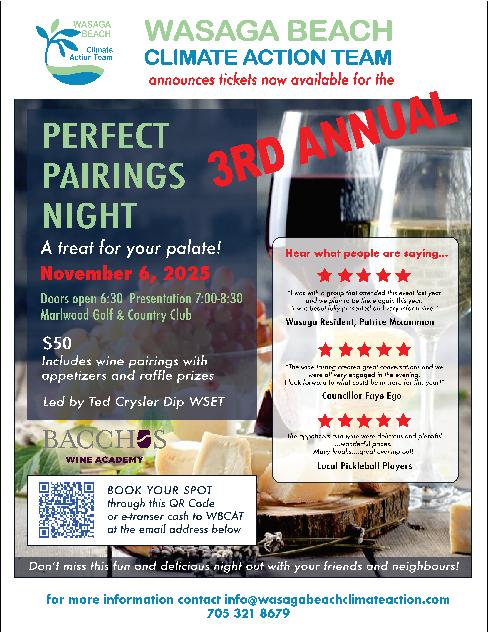When it comes to protecting our planet, every action counts—and sometimes, those actions can be as enjoyable as sipping a fine glass of wine.The Wasaga Beach ClimateActionTeam's wine tasting and pairings event is more than just an evening of delicious food and drink; it's an opportunity to support the urgent work of tackling climate change right here in our community
