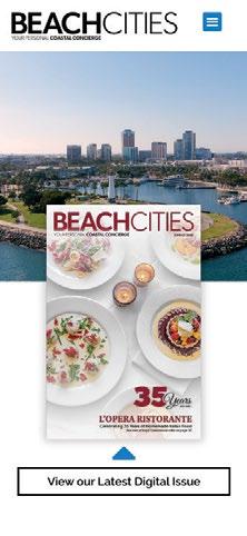Of course, this resource isn’t just for visitors. Over 100,000 area residents receive Beach Cities Magazine digitally via email—and they trust us to help them uncover new favorites right in their own backyard. We’re proud to serve as a guide for both longtime locals and firsttime guests, making sure no one misses out on the magic of life by the coast. On www.beachcitiesmagazine.com you’ll find even more robust content like our podcast, “A Taste of the Beach”, and useful links to all of our hoteliers and advertisers.