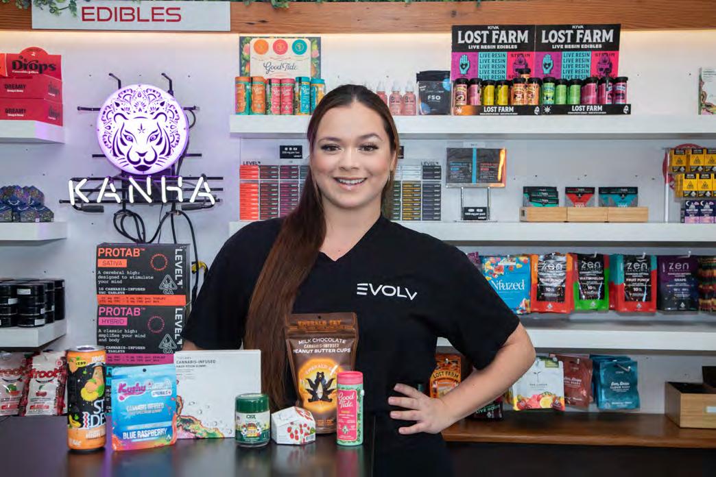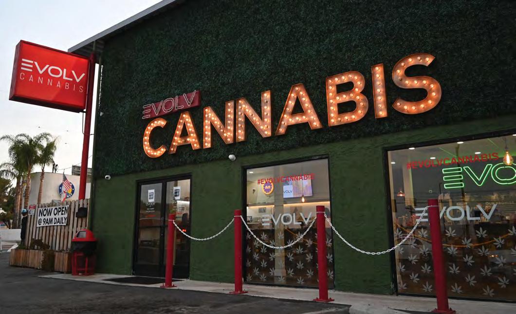 The Evolv Cannabis dispensary is appropriately named. As part of the new wave of stores opening throughout California since recreational marijuana legalization in 2018. The new storefront is indicative of the rapidly evolving cannabis industry, albeit the very forefront of that evolution. There’s nothing half hidden nor vaguely illicit about it; the store is
