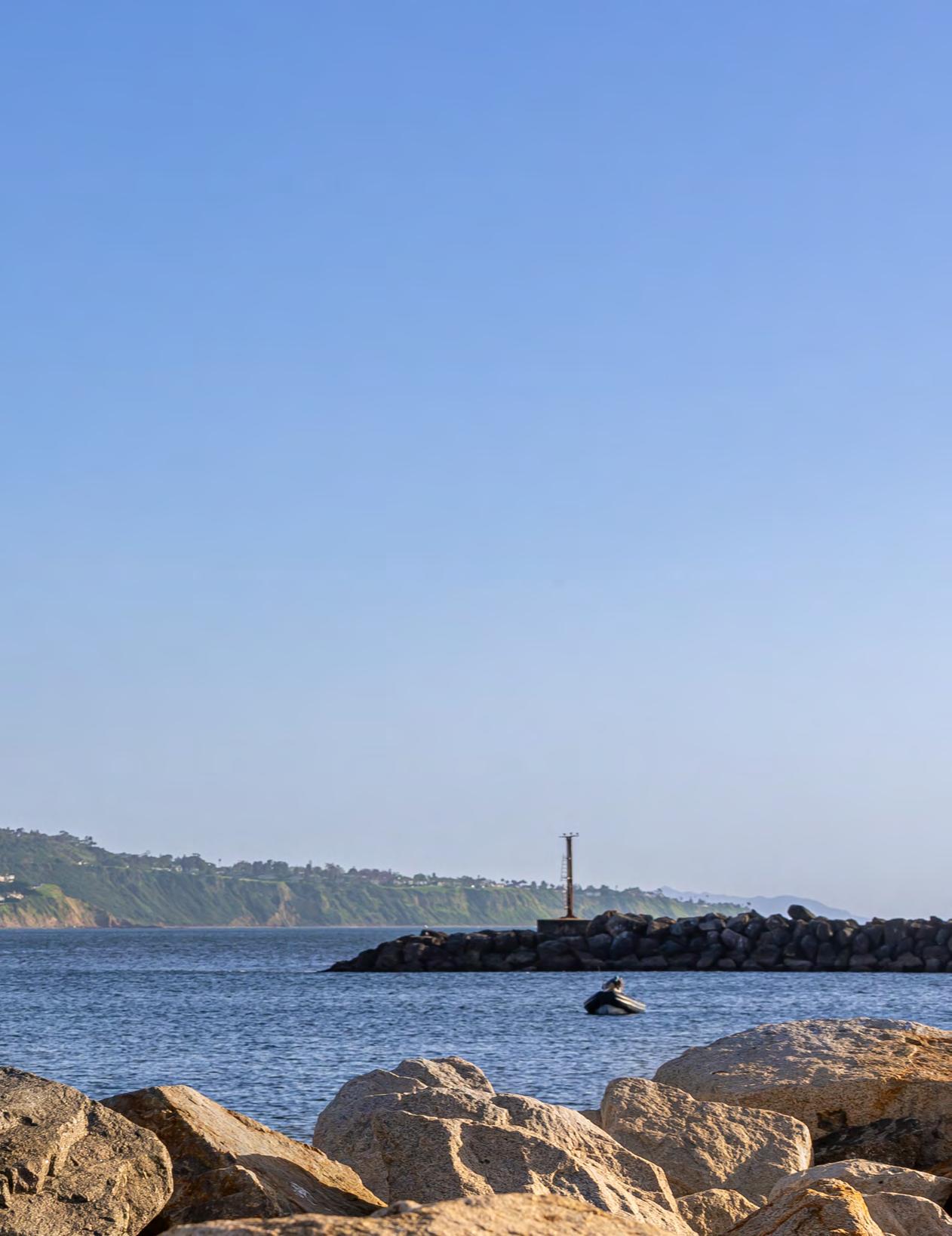 • West side of the Esplanade with white water/sand/Topaz Jetty/Catalina ocean views that span down the PV cliffside and Point Vicente Lighthouse