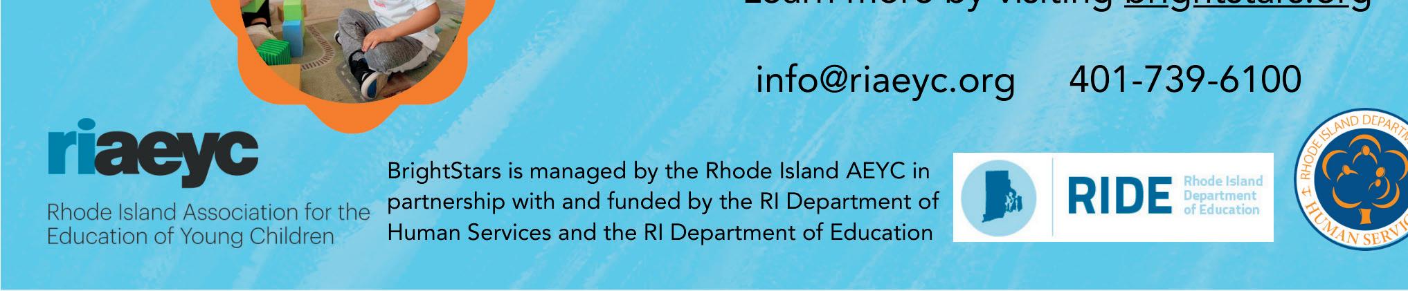 Rhode Island AEYC manages BrightStars for the RI Department of Human Services and the RI Department of Education. BrightStars helps families find early care, education and school-age programs through our referral toll free line 1-855-398-7605 or through an online search here: https://earlylearningprograms.dhs.ri.gov