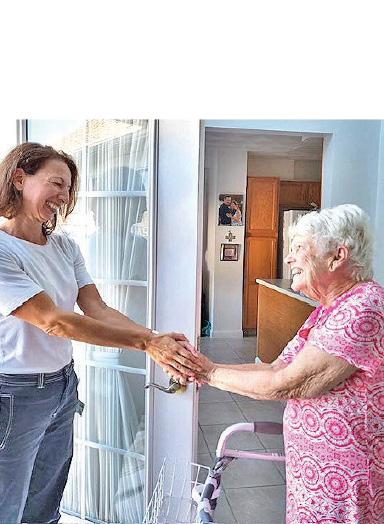 I thought I’d fi nd her kicking and screaming, being still so independent at 92 — even still driving — something she and her daughter had been arguing about for several years. But I found my aunt resting comfortably on her bed, stylishly dressed in a colorfully printed two-piece velour set. She smiled as I sat down beside her. We chatted about her foot, which was improving, and then Edna went on to describe the