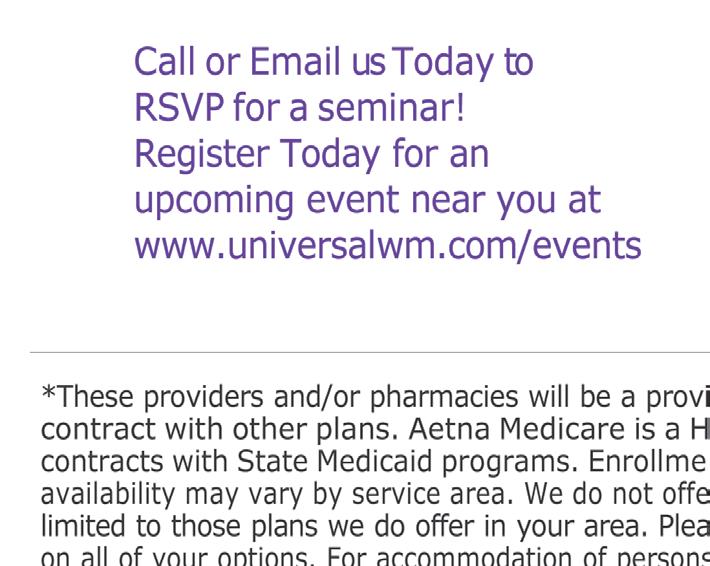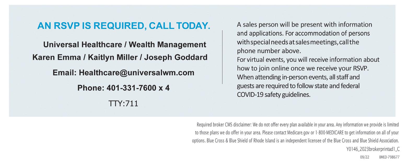 FOR ADDITIONAL IN-PERSON OR VIRTUAL DATES AND LOCATIONS VISIT US AT: UNIVERSALWM.COM/EVENTS CALL US TODAY AT 401-331-7600 x 4 TO SCHEDULE YOUR ONE-ON-ONE ZOOM OR IN PERSON MEETING
