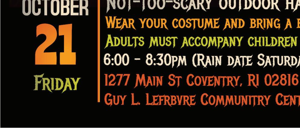 The Rotary Club of Cranston will host its Halloween Touch a Truck event on Oct. 30 from 10 a.m. to 1 p.m. at Garden City Center. Come explore big trucks along with crafts, face painting, balloon animals and more. Halloween costumes are encouraged. $10 donation per family.