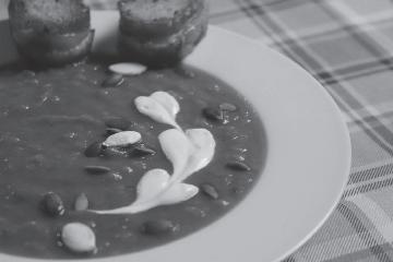 Garnish: sour cream, pepitas, roasted pumpkin seeds