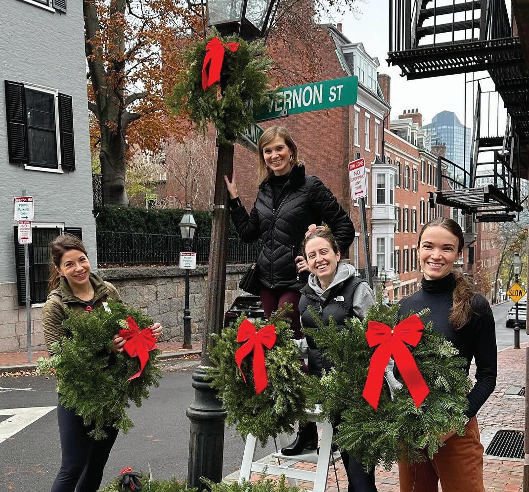 Here are some examples of the BHCA’s 2024-2025 activities. In September, the neighborhood gathered to enjoy Dinner Under the Stars on the flat of Mt. Vernon Street at one long community table with 265 guests. The day after, the annual BHCA HillFest welcomed neighborhood families and our non-profit friends for the start of the fall season. In November, Garlands and Greens at the Hampshire House sold out for yet another year and funded the wreaths for decorating our 1,100 gas lamps by neighbors during December’s Holiday Decorating.