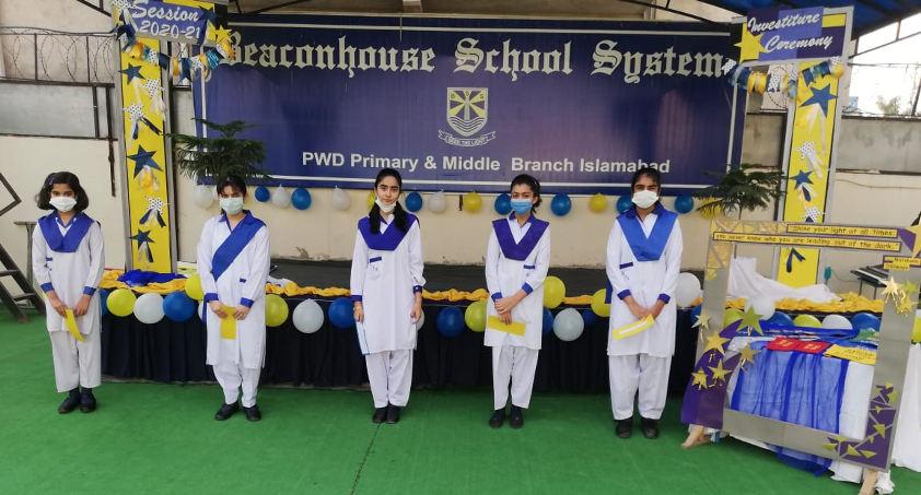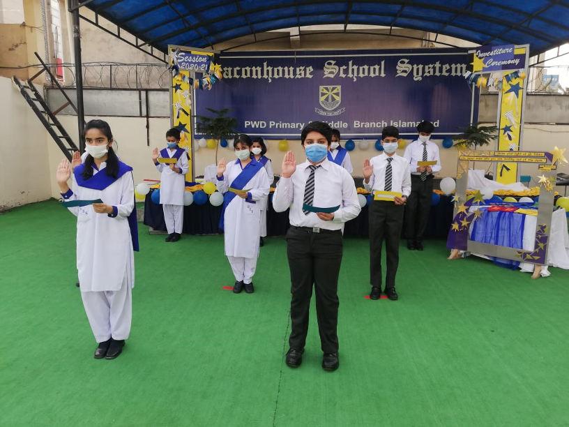 The Investiture Ceremony of the session 2020-21 took place at BSS PWD Primary and Middle Branch on 22nd October, 2020. Affan Ahmed from 8B and Haram Setthi from 8A were elected as Head Boy and Head Girl. The ceremony was held in the school ground. The Headmistress Ms. Naheed Fatima presented sashes to the student body. The new student body consisted of the Head Boy and Girl and House Representatives. An oath-taking ceremony also took place where the student body took oaths and promised to fulfill their duties and responsibilities.
