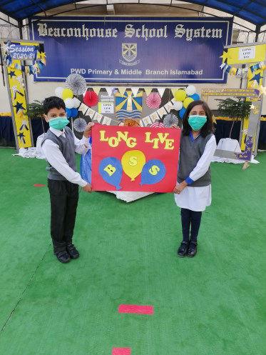 The 45th anniversary of BSS was celebrated heartily at BPPM PWD Primary and Middle Branch. Proud beaconites shared the success story of BSS to highlight how Beaconhouse has led the way in academics, curricular and co-curricular activities for the last 45 years. Students of BPPM decorated their ‘BSS Birthday class walls’ with party flags, birthday cards and birthday wishes. Students also created their E-cards and posters to show their love. They had their cupcake parties while wishing BSS Birthday wishes. Lucky draw winners released the yellow and blue balloons in the ground, students really enjoyed the moments when their balloons were unleashed into the sky. A cake-cutting ceremony was also held to commensurate the anniversary celebration. The purpose to celebrate this day was to develop sense of ownership and also to show the love for the school.