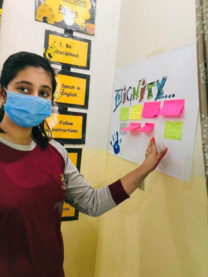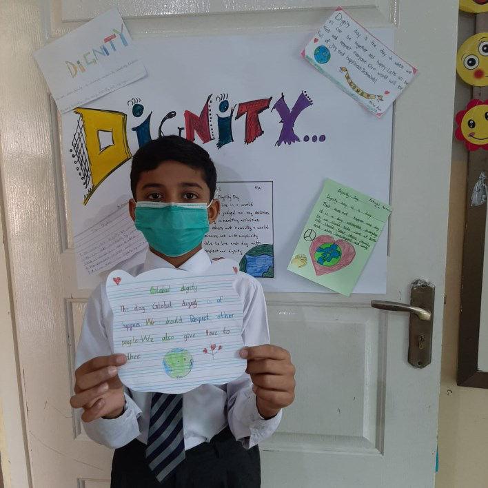 Global Dignity Day is celebrated around the world to make everyone realise that we all have rights and deserve respect. A spirited celebration of Dignity Week was held at BPPM PWD Primary and Middle Branch from 15th till 21st of October 2020. Students of each level were engaged with different activities. Students’ enthusiastically participated in designing their own classroom dignity walls. They shared their own perspective through beautiful posters that later on became a part of Global Dignity Wall. Whereas showing gratitude with under-privileged schools’ students they presented token of love, in forms of sanitizers, masks and soaps to develop more caring world around. Middle school students participated in a thematic photography competition. Dignity Ambassadors’ were selected from each section aiming to nurture the value of dignity amongst the students. Ms. Naheed Fatima (Headmistress) gave away the badges to the proud students followed by an oath taking ceremony.