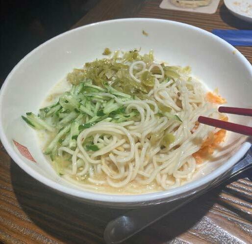 One of many noodle dishes on offer at Chun Shui Tang. This one consists of a light broth, cucumber, carrots, and unseen sesame paste that sits at the bottom of the bowl. | Photo by By Eloin Barahona-Garcia