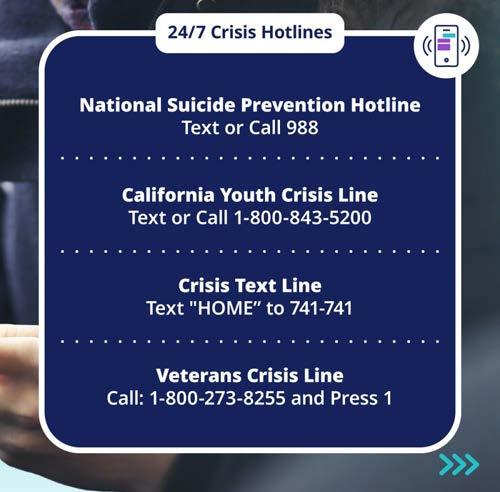 Crisis hotline phone numbers. | Graphic courtesy of LA County Department of Public Health