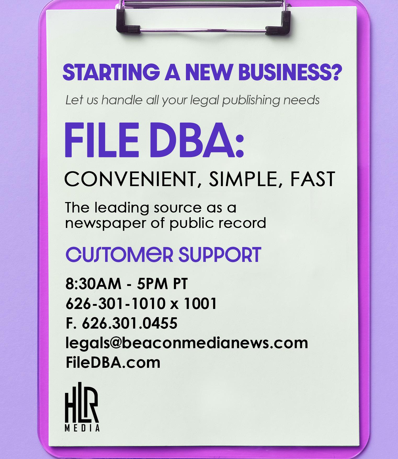 Press Starting a New Business? Start it off RIGHT and file your D.B.A. Online www.filedba.com