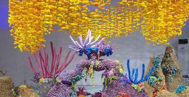 Mulyana, "Ocean Wonderland," 2020, Yarn, Dacron, cable wire, plastic net, metal rod, felt fabric. | Photo courtesy of STUDIO MOGUS