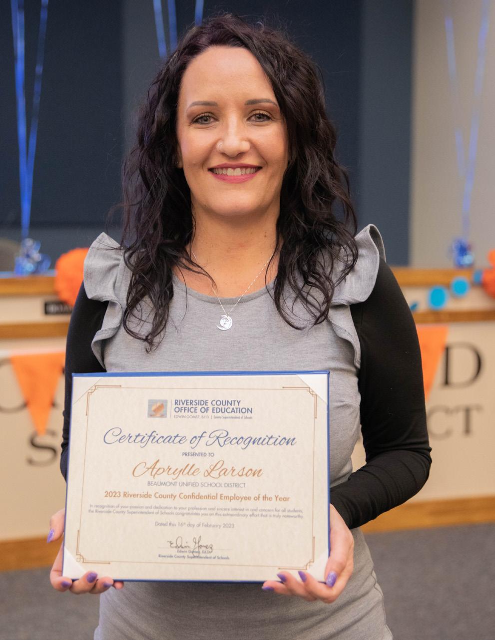 On Feb. 16, staff from Beaumont Unified School District’s Instruction and Support Services team gathered in the boardroom at the Educational Support Facility for a regularlyscheduled meeting, only to find out that one of their team members was about to be surprised with the news that she is the 2023 Riverside County Confidential Employee of the Year.