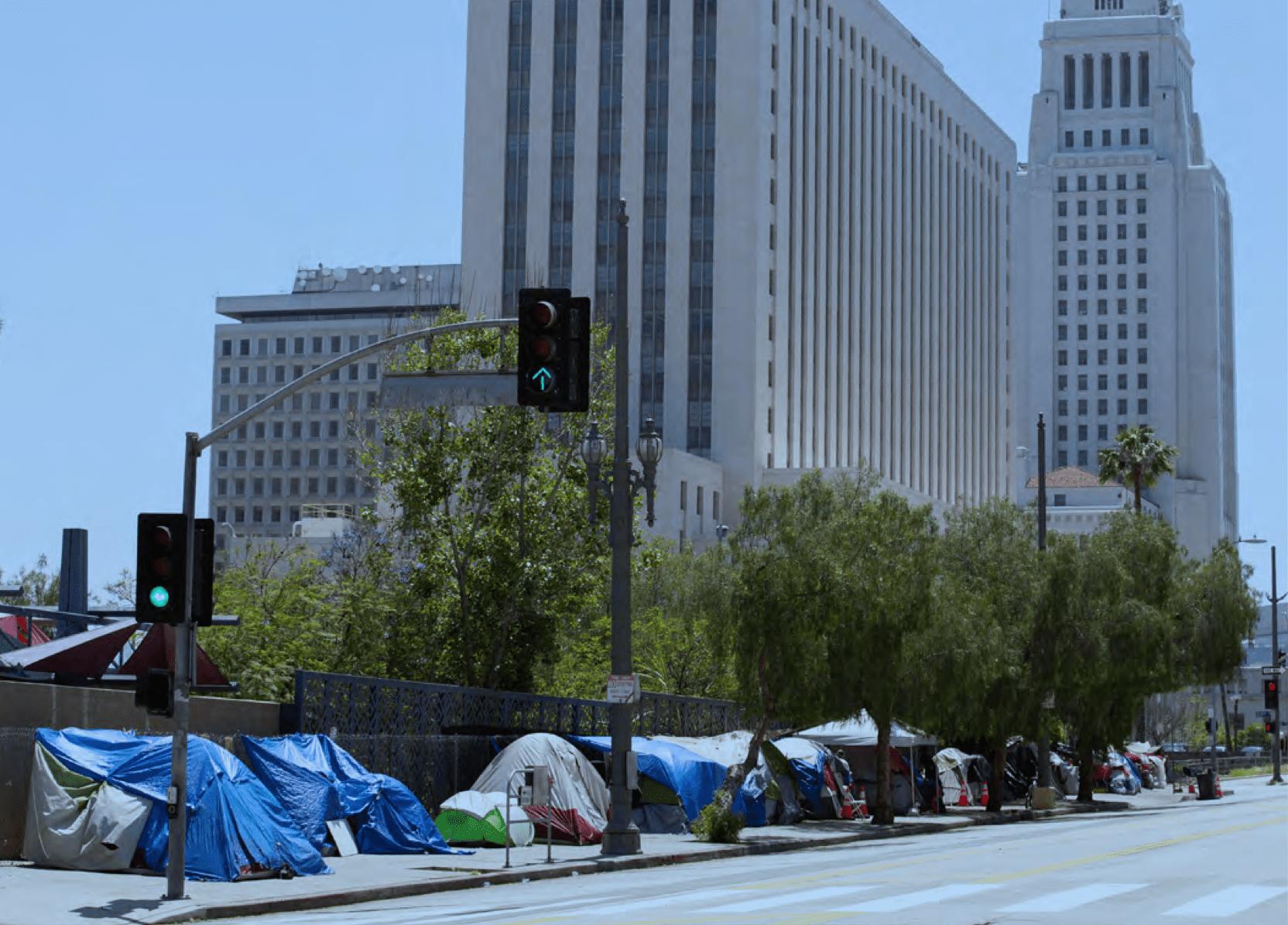 A homeless encampment sits just down the street from Los Angeles City Hall. | Photo courtesy of the U.S. Interagency Council on Homelessness