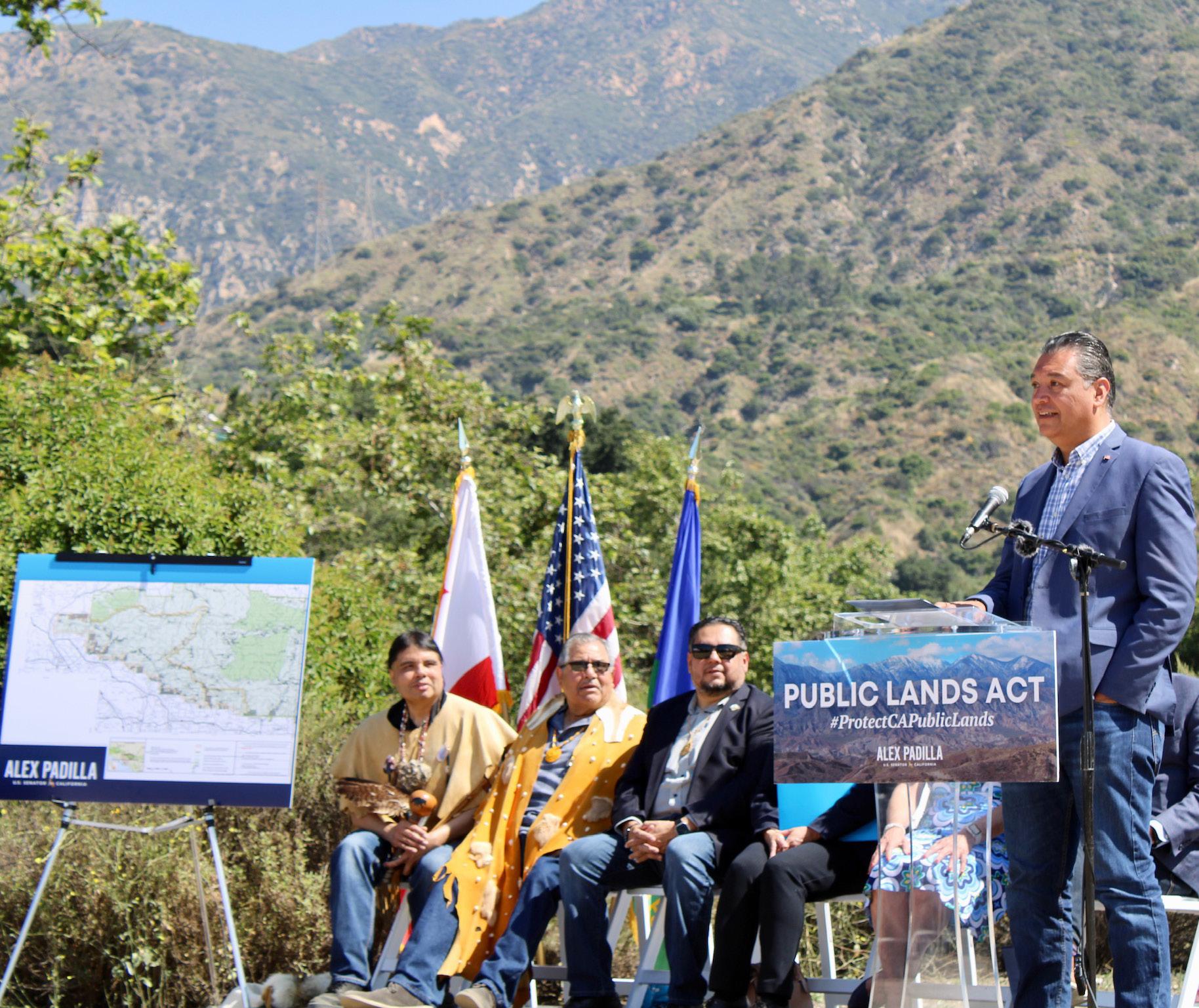 U.S. Sen. Alex Padilla speaks at a news conference calling for wilderness preservation in the San Gabriel Mountains. | Photo courtesy of Senator Alex Padilla/Twitter
