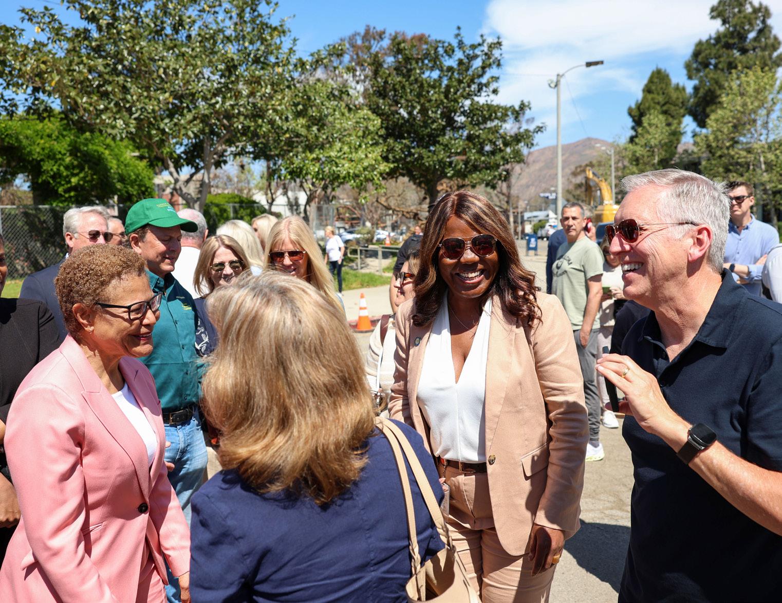 During a morning news conference in the Palisades, Mayor Karen Bass joined Steadfast LA and LA Strong Sports, two private organizations, to announce their partnership and plans to restore the recreation center.