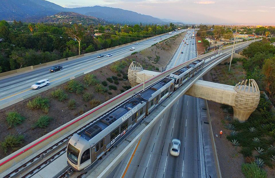 The Metro L (Gold) Line crosses a bridge over the 210 Freeway in Arcadia. | Photo courtesy of Foothill Gold Line Construction Authority/LACMTA/Wikimedia Commons (CC0)