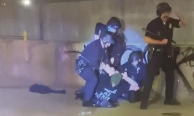 one individual was charged with assault with a deadly weapon on a police officer and one arrest was for an alleged curfew violation. Saturday'sprotests occurredafterviolence broke out Friday night, when protesters were arrested for throwing objects at federal agents at downtown's Metropolitan Detention Center. A large rally began at 2 p.m. Saturday on the steps of City Hall, 200 N. Spring St. Similar to the protest Friday night, the demonstration Saturday appeared peaceful at the start, but as the later hours of the night set in, the LAPD issued a citywide tactical alert and ordered protesters to disperse