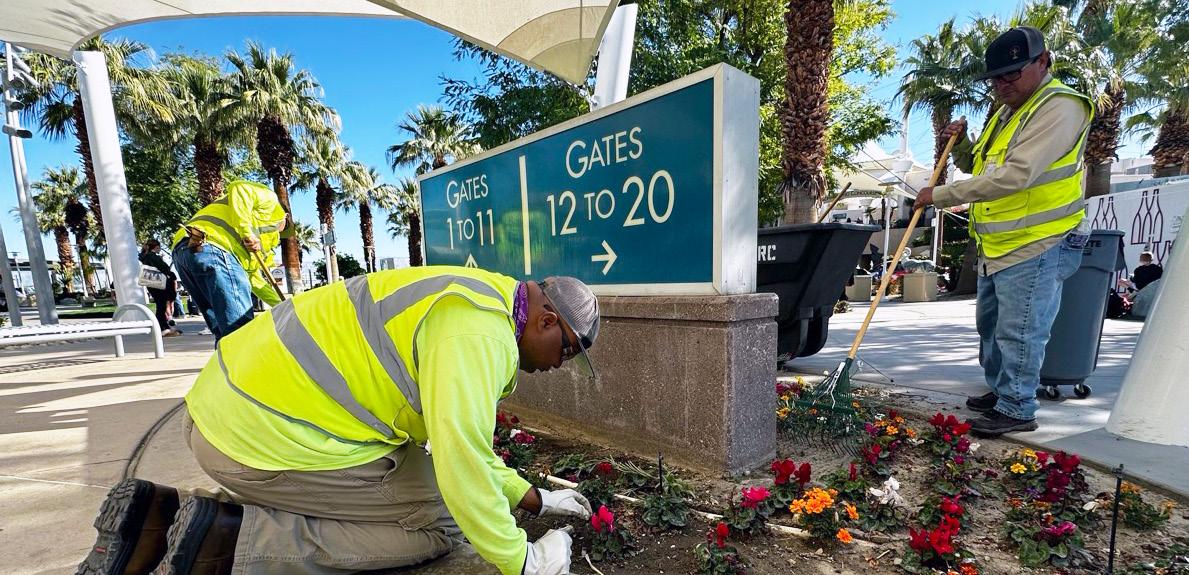 Personnel from Desert Arc’s landscape maintenance division will do daily trash hauling, weed abatement, bush trimming and sprinkler repairs, officials said. A crew of three individuals with disabilities and one job coach will work year-round, seven days a week performing upkeep and maintenance work at the airport’s inner courtyard and surrounding areas.