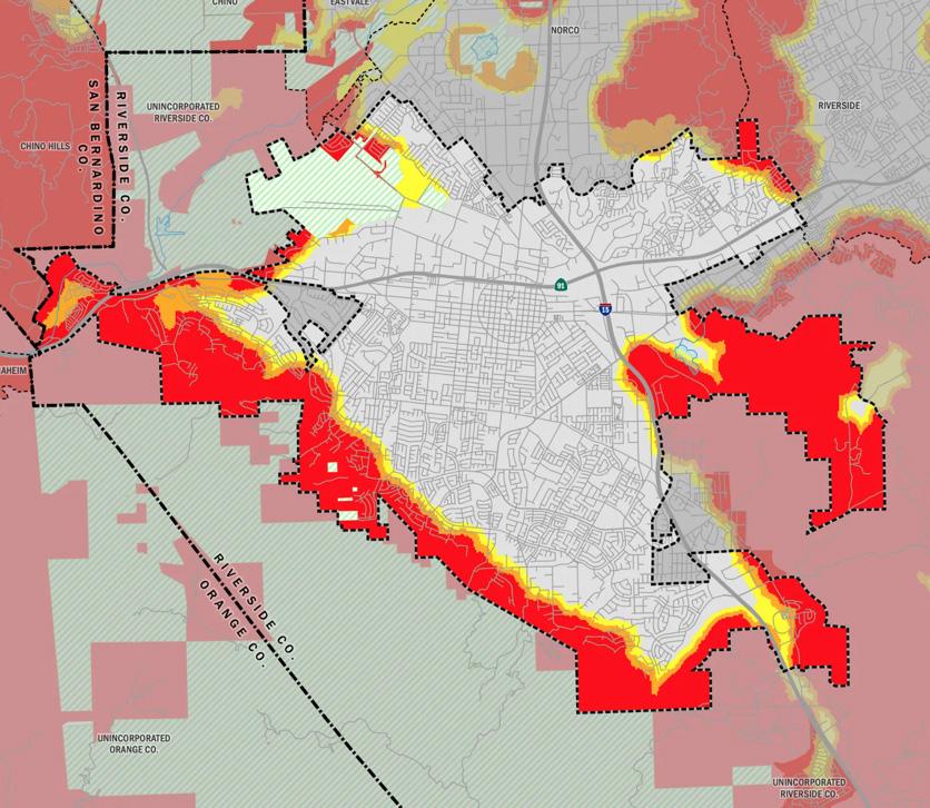 a large slice of the city’s western border with Norco, fall into red-lined tiers.