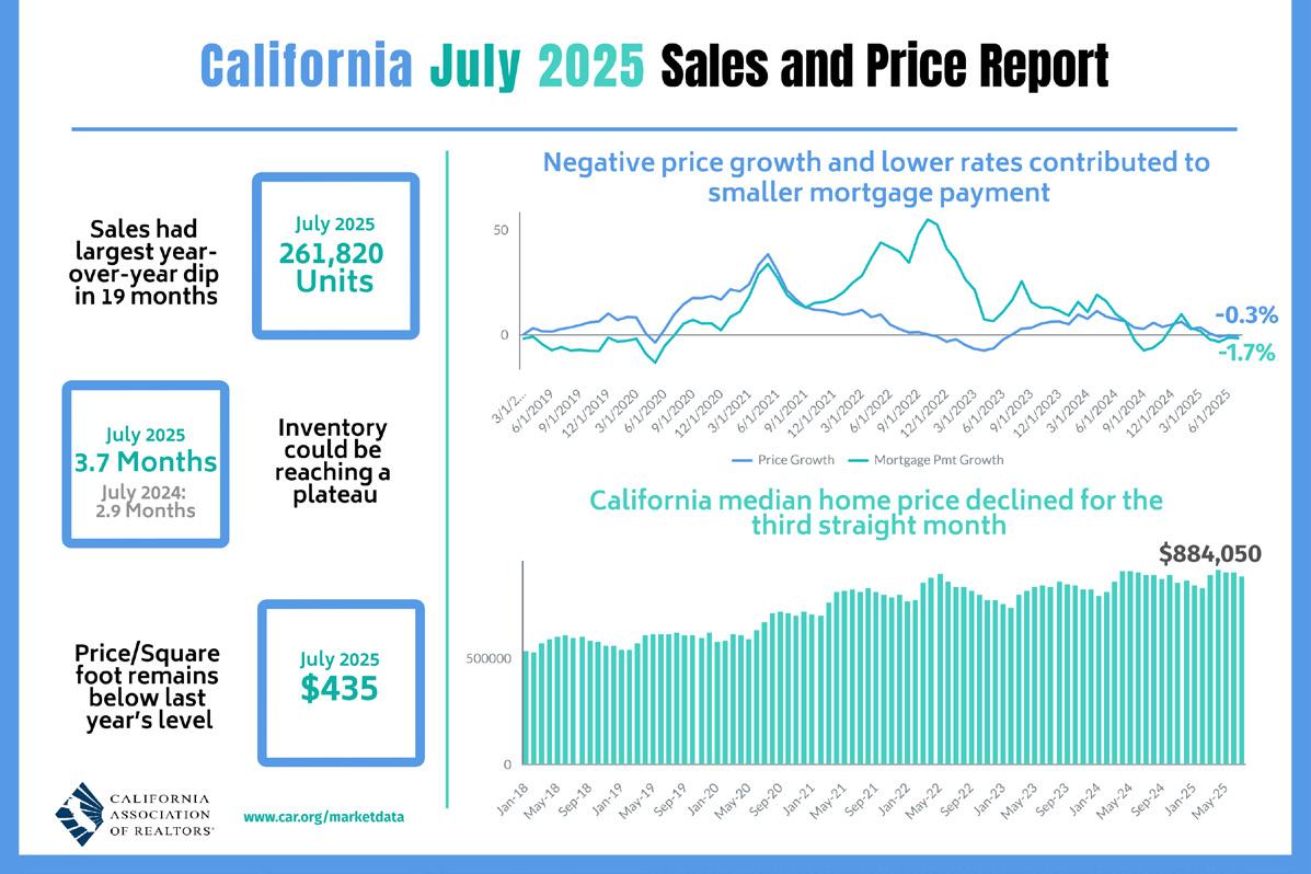 The statewide annualized sales figure represents what would be the total number of homes sold during 2025 if sales maintained the July pace throughout the year. It is adjusted to account for