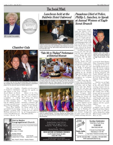 Pasadena Chief of Police, Phillip L. Sanchez, to Speak at Annual Women of Eagle Scout Brunch Guests at the 14th annual San Gabriel Valley Council of Boy Scouts of America Women of Eagle Scout Brunch will be treated to an elegant and motivating event on Saturday, May 7, 2011, at the Langham Huntington Hotel and Spa in Pasadena. A reception will be held at 10:30 a.m., followed by brunch and program at 11:15 a.m. Local Boy Scouts from Troops 351, 355, 358 and 359 will once again greet guests during the hosted reception and will usher them into the Venetian Room for a delicious brunch. Scouts from the San Marino troops, under the direction of Jeff Reimer of Troop 355, will lead the Pledge of Allegiance, followed by a memorable rendition of the National Anthem by the Arcadia High School Quartet who will also entertain guests throughout the reception and brunch. Eagle Scout Sam McCarthy, son of San Marino residents David and Carlin McCarthy, and an Eagle Scout from San Marino Troop 355, will share his experiences as a Tiger Cub up the path to the rank of Eagle. Georgene Smith will present the invocation. Capping the brunch will be a motivating talk presented by Pasadena Police Chief Phillip L. Sanchez. Chief Sanchez served as Deputy Chief at Santa Monica Police Department prior to his appointment as chief of Pasadena Police Department. He has an extensive background in police tactics and community policing, and twice