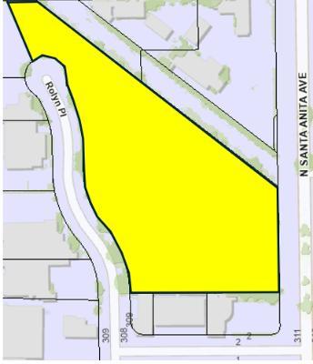 Project Description: The Applicant is requesting approval to consolidate six (6) existing parcels into a single a 3.11-acre lot following required sidewalk dedications along North Santa Anita Avenue and Rolyn Place. The project also includes the demolition of four (4) existing buildings on the site and the construction of a new eight story mixed-use development known as “Alexan Arroyo.” Alexan Arroyo is a Density Bonus project consisting of 359 residential units, including 35 very low-income affordable units, as well as nine (9) live/work lofts totaling approximately 9,250 square feet. The project will provide 446 parking spaces distributed between ground-level parking and two levels of above -ground parking Additional features include landscaped courtyards, roof decks, and a variety of indoor and outdoor resident amenities. The project also proposes the removal of one protected Coast Live Oak tree from the site.