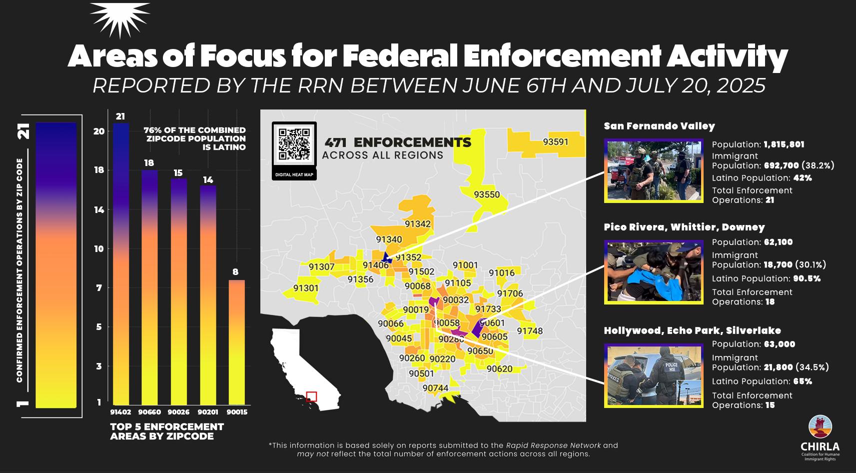 “The blatant racial profiling by the Trump administration is clearly visible in this map,” Angelica Salas, executive director for CHIRLA, said in a statement.
