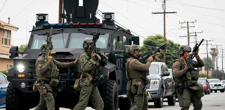 Immigration law enforcement agents prepare for a raid June 12 in a Los Angeles neighborhood. | Photo courtesy of Tia Dufour/U.S. Department of Homeland Security/Flickr