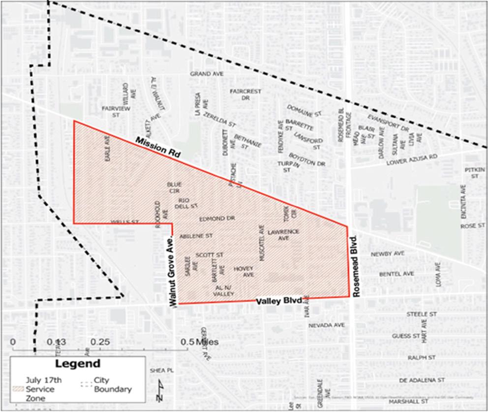 This map outlines the proposed area for collection in Rosemead Thursday, July 17, 2025. | Image courtesy of the city of Rosemead