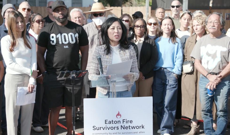 Eaton Fire Survivors United members and local homeowners shared their experiences of having claims delayed or denied by insurers. They called for insurance companies