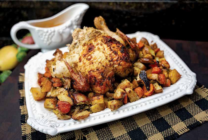 6. Place pan over indirect heat and grill 1 hour, 30 minutes, or until chicken reaches internal temperature of 165 F.