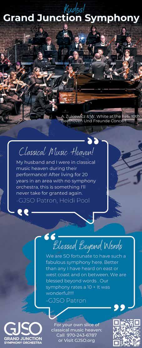 FREE ADMISSION! ENTERTAINMENT • SEMINARS • VENDORS • FOOD • FUN Thursday, April 18, 2024 | 9 am-3 pm Grand Junction Convention Center COLORADO’S FUNNEST BOOMER & SENIOR EXPO ™ CALL 970-243-8829 FOR INFO • BEACONFEST.BEACONSENIORNEWS.COM THANK YOU TO OUR 2024 SPONSORS!