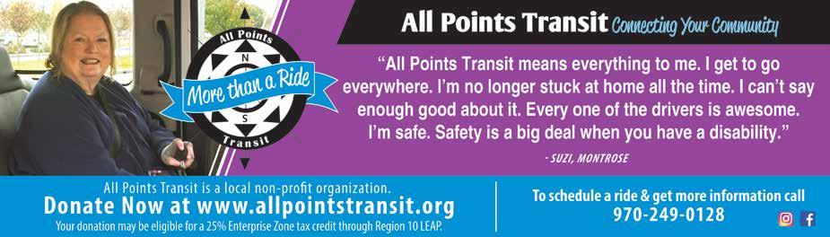 ADRC - SOS: Provide rides to homebound seniors. Apply at htop.org/ volunteer or call 970-248-2746.