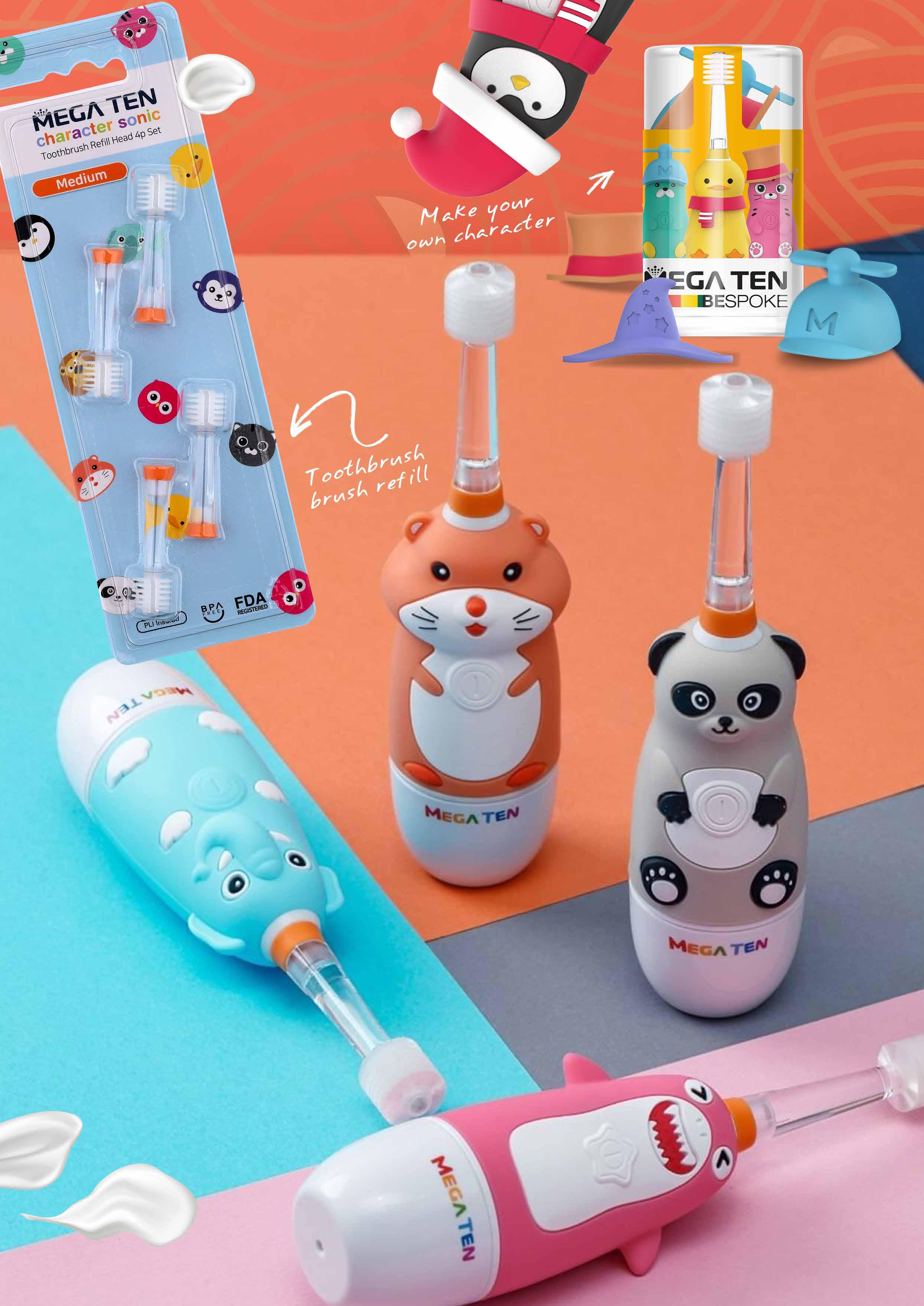 4: 9114 | KR | Mega Ten | Kids 360° Sonic Electric Toothbrush Cat | 3pcs.