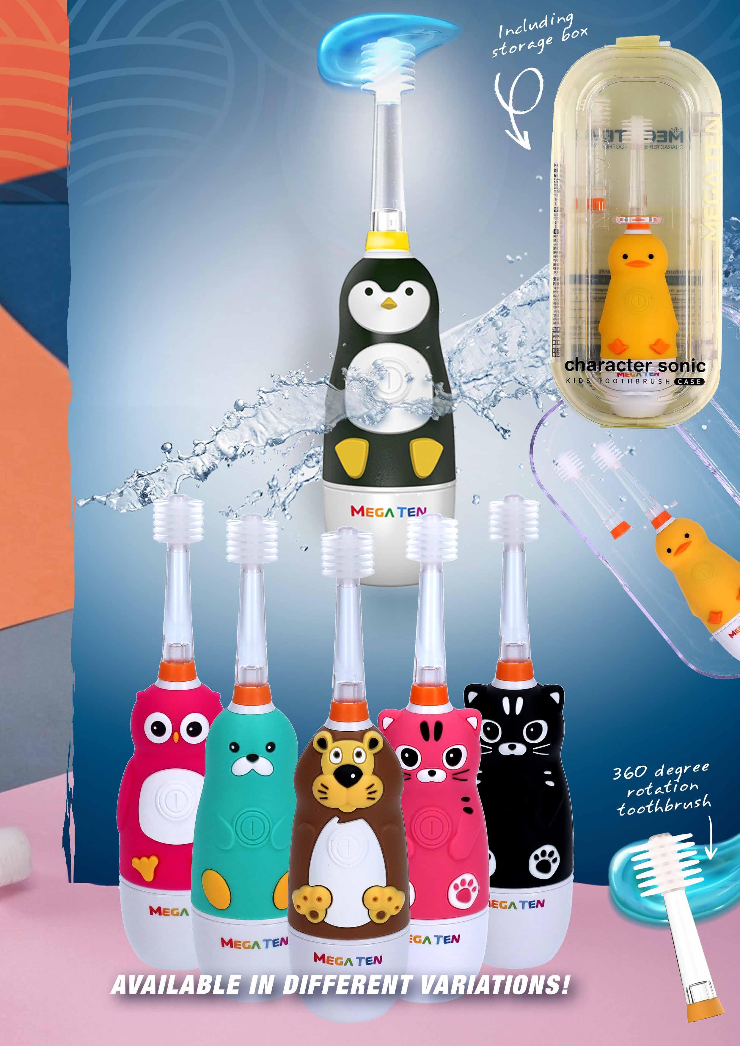 9120 | KR | Mega Ten | Kids 360° Sonic Electric Toothbrush Penguin | 3pcs.