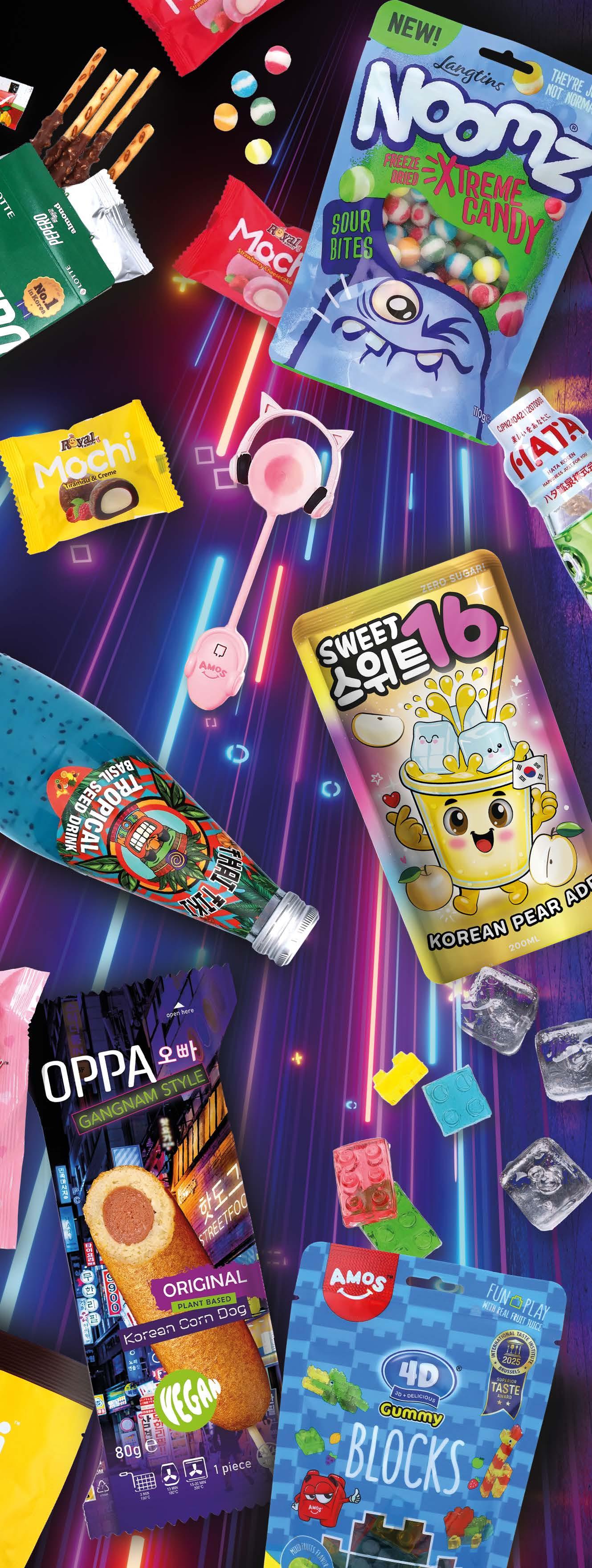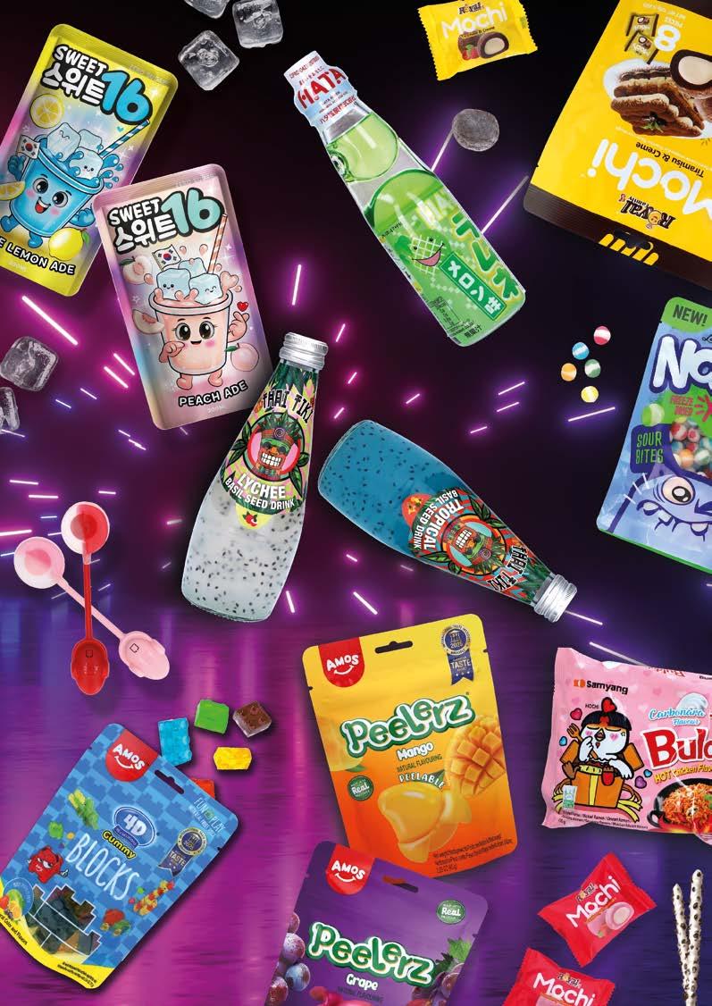 Life is sweet and that's why we proudly present you our wide range of sweets from famous brands like Amos 4D, Noomz, Peelerz, Pepero, Striking, Speshow and Royal Family.