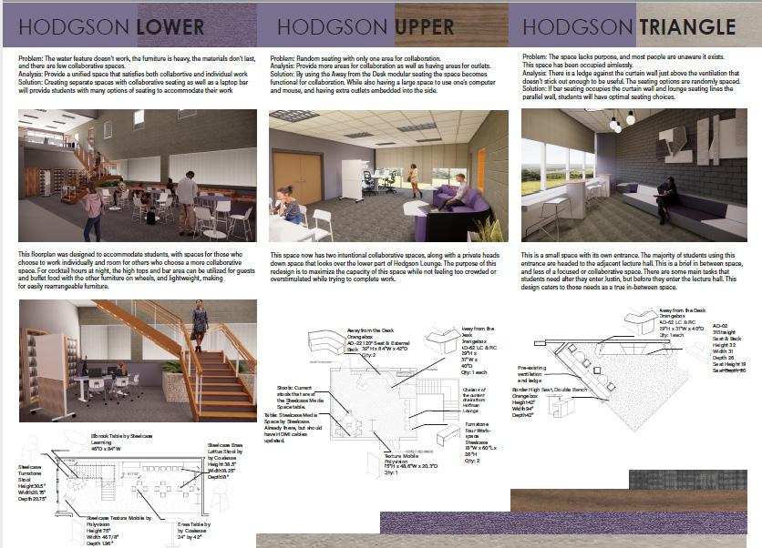 This was a group project that took place in person in the Health and Human Sciences building at Kansas State University. The groups had the opportunity to meet and interview the college event planner who picked four key areas that she felt needed renovation within the building.
