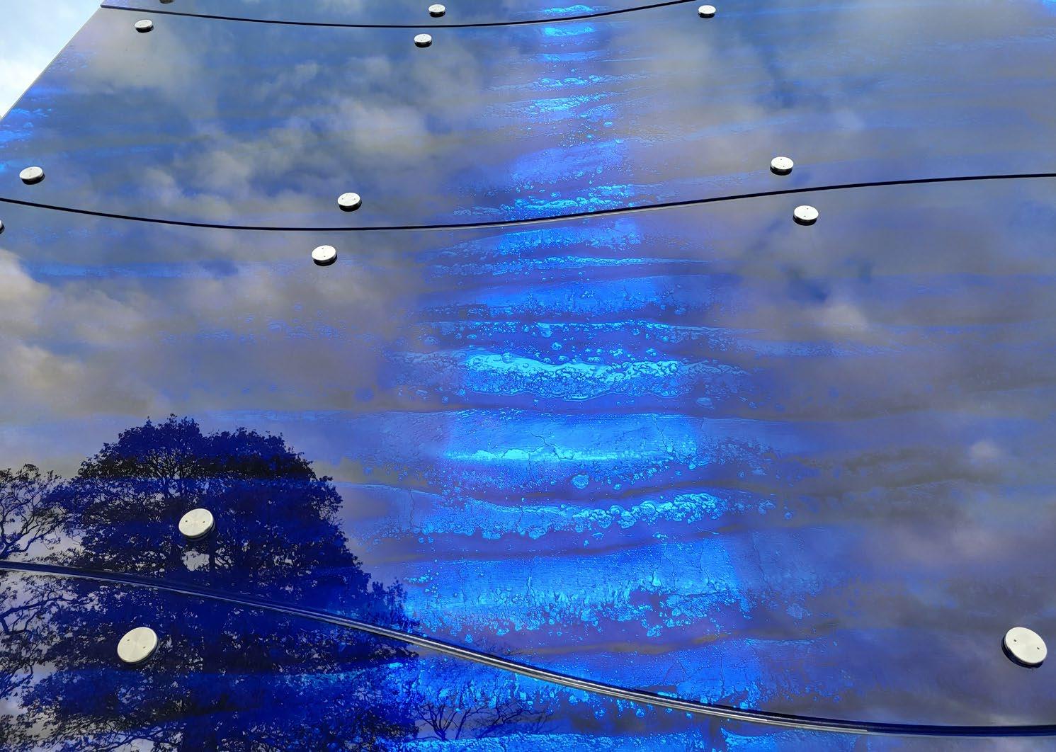 The piece ‘Can you see us’, incorporates key industrial notes from the past using the profile of the Codd Bottle’s negative form as the overriding shape. (The main Codd Bottle production factory was in Stairfoot) The piece references the coal industry and the surface design uses prismatic reflective rectangles in a tessellated brick pattern.