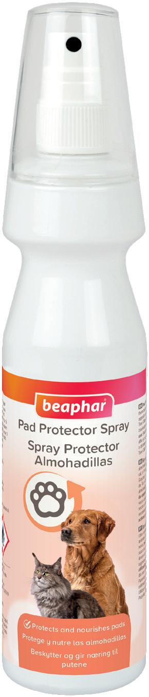El Spray para Almohadillas de Beaphar ayuda a evitar futuros problemas como la formación de ampollas o grietas. Gracias a su formulación, ayuda a mantener unas almohadillas suaves y flexibles, haciéndolas más resistentes a la nieve, hielo, gravilla, asfalto caliente o arena.