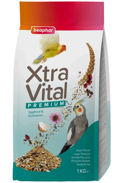 NL Beaphar XtraVital Grote Parkiet is een smakelijk en compleet premium voer met een gevarieerde samenstelling van o.a. zaden, vruchten, eivoer (20%), grit, vitaminen en mineralen van hoge kwaliteit. Aan deze uitgebalanceerde voeding hoeft niets meer toegevoegd te worden. XtraVital draagt bij aan een gezonde en levenslustige Agapornis of Valkparkiet.